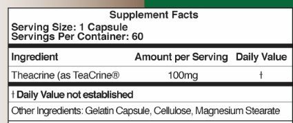 Theacrine (Teacrine) - Energy and Stamina Boosting Supplement - 100 Mg - 60 Capsules