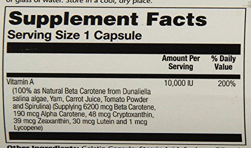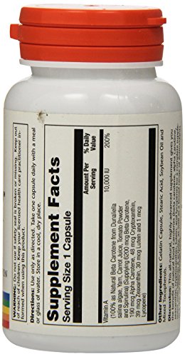 Product Description Solaray's?dry natural food carotene 10,000 IU contains more than 200 percent of the RDA of vitamin A and can help promote overall health and wellness. 0