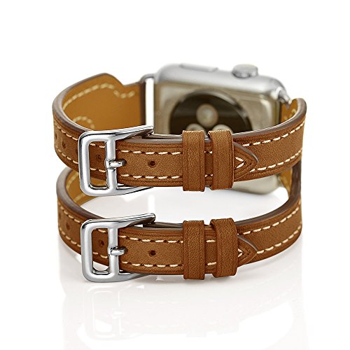 EloBeth for Apple Watch Band Series 2 Series 1, Apple Watch Leather Band, iWatch Band Genuine Leather Band Wrist Watch Band with Adapter for Apple Iwatch (Double Cuff Brown 42mm)