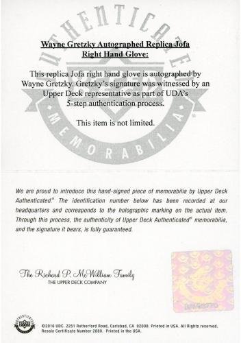 Wayne Gretzky Edmonton Oilers Autographed JOFA Right Hand Replica Hockey Glove - Upper Deck - Fanatics Authentic Certified