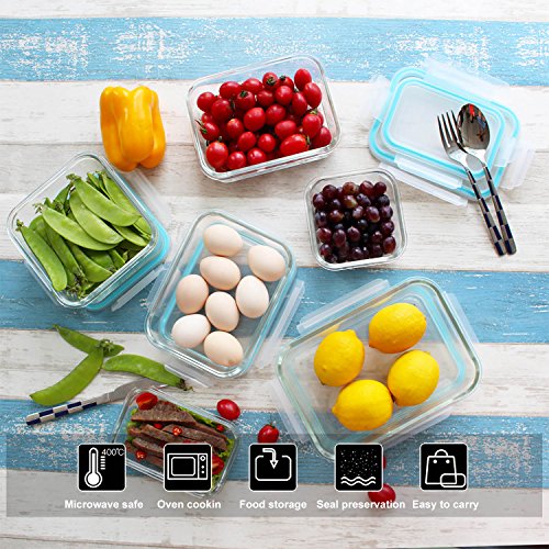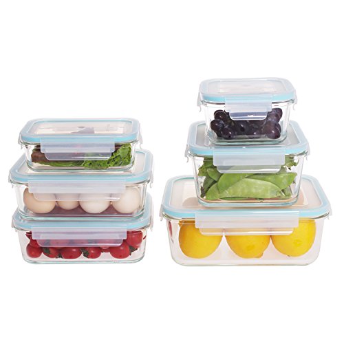 Glass Food Storage Containers with Locking Lids 12 Piece Set,BPA Free Food Container Set, Microwave,Oven,Freezer,Dishwasher Safe