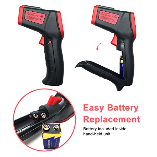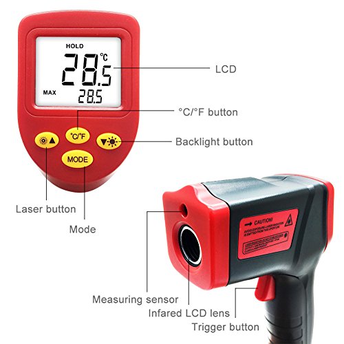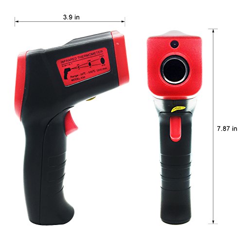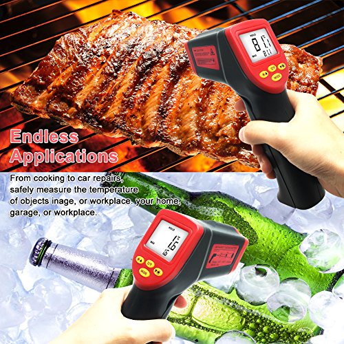 - ♣ WIDE RANGE OF APPLICATION: laser temperature gun Ideal for household use or industrial measurements, Infrared Technology makes this thermometer handy to use when cooking and barbequing, performing auto maintenance, doing home repairs, and a host of other tasks, you can measure the surface temperature of food, Inspect your cars cooling system, brakes, and tires.