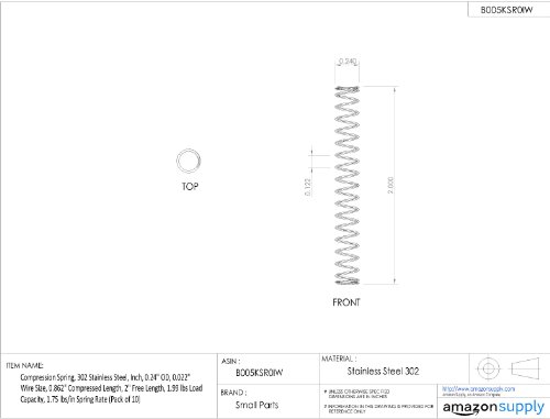 Compression Spring, 302 Stainless Steel, Inch, 0.24" OD, 0.022" Wire Size, 0.127" Compressed Length, 0.25" Free Length, 1.99 lbs Load Capacity, 16.24 lbs/in Spring Rate (Pack of 10)