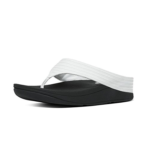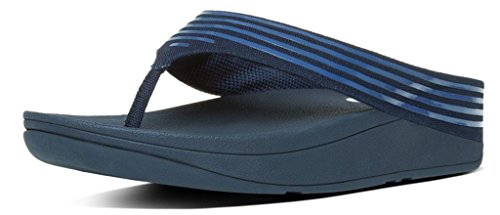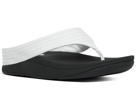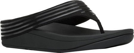 Sleek flip flops with rubber stripes on canvas over our ergonomically and biomechanically engineered, supercushioned, pressure-diffusing midsoles. These flip flops appear beautifully simple but like a furiously paddling swan - have a lot going on underneath. With built-in arch contour and our amazing Microwobbleboard midsoles.Feature