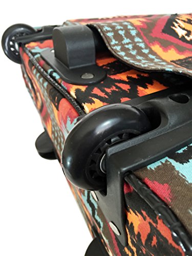 -. Binding : Electronics -. Brand : Trendy Flyer -. Color : Black White Yellow Sky Blue Red Orange -. Department : laptop-computer-briefcases -. EAN : 0765857885315 -. Feature : Color: Black, White, Yellow, Sky Blue, Red, and Orange / Padded laptop area can fit laptop 12" wide, 12" tall and 2" thick using securing velcro strap. Padded laptop area can fit laptop 12" wide, 17" tall and 2" thick without using securing velcro strap. / Material: Polyester Canvas with Polyurethane Trim / Tribal / Size: 19" H x 17" L x 9" W / Weight: 4.5 lbs / Additional Info: Height From Top of Handle to Floor with Handle Fully Extended: 35" -. Label : Private -. Manufacturer : Private -. PackageQuantity : 1 -. ProductGroup : PC Accessory -. ProductTypeName : CARRYING_CASE_OR_BAG -. Publisher : Private -. Studio : Private -. Title : Trendy Flyer Computer/Laptop Rolling Bag 2 Wheel Case Tribal -. UPC : 765857885315
