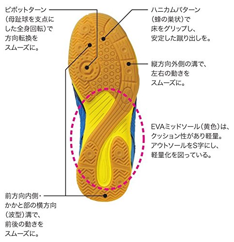 어퍼(upper)는 경량 더블 메쉬로 환기성 발군!족전체를 확실히 홀드 하는 형상은,피트감보다 뛰어나 있습니다. 이기기 위해서(때문에) 필요한 것.그것은 탁구에 필요한 파트가 장비 된,슈즈를 선택하는 것 일지도 모르다. ●pivot 턴(모#구를 지점으로 한 전신 회전)나와 방향 전환을 부드럽게. ●honeycomb 패턴((하치노스)벌집상)나와 마루를 그립 하고, 안정 했 차 내밀기를. ●종방향의 도랑에서,좌우의 움직임을 부드럽게, ●전방향 안쪽 발뒤꿈치부의 횡방향(파타입)도랑에서,전후의 움직임을 부드럽게. ●EVA미들 솔(노란색)서는,쿠션성이 있어 경량.아웃 솔을 S자로 하고, 경량화를 꾀해 있는다. ●아웃 솔:각 패턴은,효율적인 footwork를 하기 위한 중요한 파트입니다.우수한 그립력을 발휘한다,소프트 콤파운드(부드러운 고무)아웃 솔을 사용 하고 있습니다. ●인 솔:쿠션성 이 뛰어난,컵 인 솔.발바닥의 장심(종아치)를 지원하는 아나운서 토미카《루》형상.