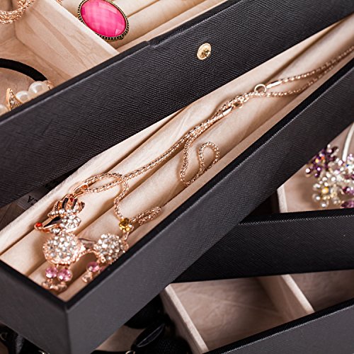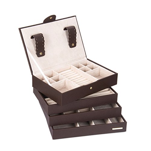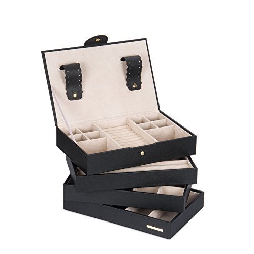 -. Feature : - Suitable to store most types of fine jewellery; including earrings, rings, bracelets and necklaces / - Add on Stacker accessories, including Charm bar, Watch and Bracelet Pad and travel box, for extra Storage / - premium Faux leather Exterior with plush contrast lining / - Classic set of 4, 10.62 *6.9 *6.9 Inches / - Mix and match The complete Classic Stackers range to create a jewellery box as individual as you are