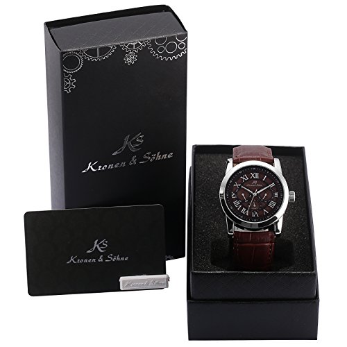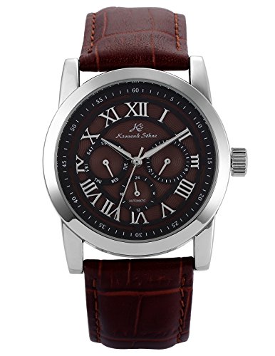[K 에스]KS 손목시계 자동 감기 기계 날짜 요일 표시 레더 맨즈 KS325