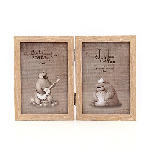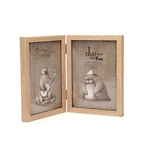 4x6 Inches Hinged Foldable Double Openings Desktop Picture Frame with Glass Front (4x6, Wood Color)