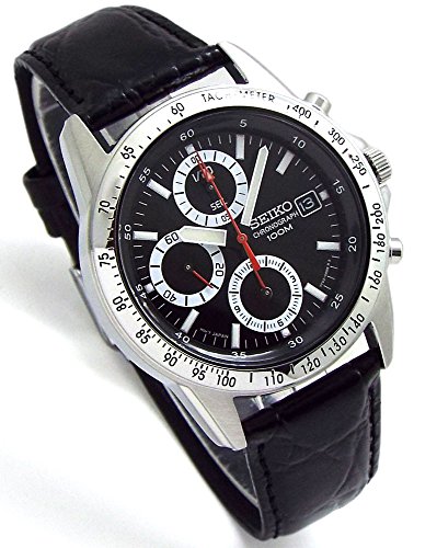SEIKO 크로노그래프 손목시계 가죽 벨트세트일본 세이코 정규 유통품 블랙 SND371P1 [병행수입품]