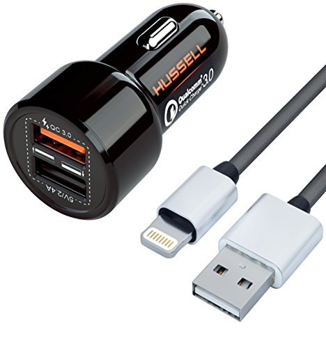 -. Title : HUSSELL Car Charger + lightening (iPhone type) cable. Quick Charge 3.0 + 2.4A Smart IC Dual USB Car Charger