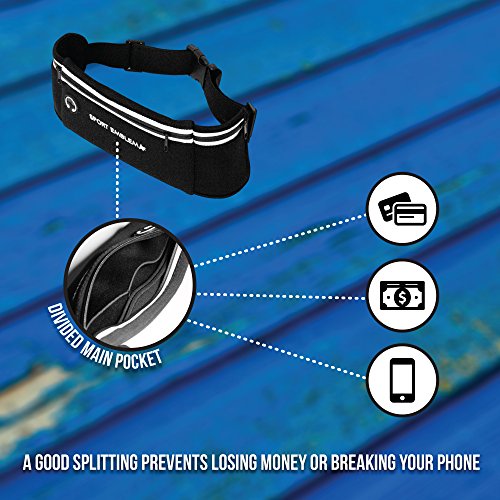 Do you think maybe it's not your measure or your phone would not fit? Don't worry! The fanny pack is fully adjustable and, no matter if you are a lady or man, if your waist is between 27"-43", congratulation: you just found the proper waist bag! Also, the size of your phone will not be a problem because the main pocket of 4"-8" can accommodate the most voluminous phone, whether it's standard or plus. You will not miss an important conversation or a charming picture and you will also have access to your favorite playlist , workout tracking, running routes or heart rate monitoring.