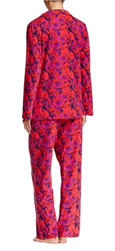 Product Description A comfy sleepwear set is cut from soft, printed fabric with a button-up long sleeve top and a wide leg bottom with notch collar, long sleeves, front button closure, elasticized waist. 0