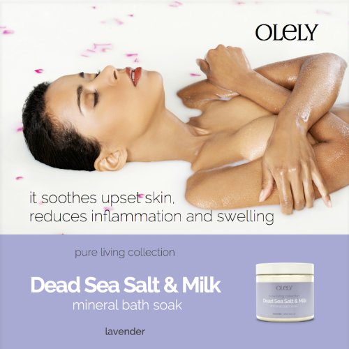 -. Binding : Misc. -. Brand : Olely -. EAN : 0799559927912 -. Feature : It Nourishes And Conditions Your Skin And Hair / It Soothes Upset Skin, Reduces Inflammation And Swelling / It Has A Wonderful, Relaxing Lavender Aroma / It Dissolves Quickly And It Doesn't Stain The Tub / Premium Quality Product Made In The USA -. MPN : AB-01785 -. NumberOfItems : 1 -. PackageQuantity : 1 -. PartNumber : AB-01785 -. ProductGroup : Beauty -. ProductTypeName : BEAUTY -. Title : Lavender Dead Sea Salts & Milk Bath Soak ★ Organic Spa Recipe - A Blend Of Pure Essential Oils, Vitamins, Minerals And Milk Proteins ★ A Great Gift For Men & Women ★ Revive In A Rich, Creamy Bath That Calms Your Senses And Nourishes Your Skin -. UPC : 799559927912