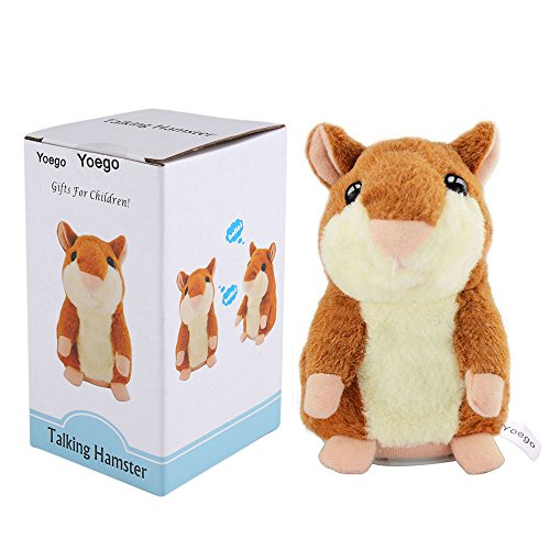 Please Pay Attention: As many other sellers who are selling under this Yoego listing but cannot offer the quality as Yoego store, we make Yoego tag and Yoego special box for this item. There is still some previous stock in American Amazon warehouse which without Yoego tag and Yoego box, but we are still resposible for it. If you buy it at cheap price from other store, we Yoego store will not be reponsible for it's quality. Features: ☺With soft fluffy plush outer and ABS gear inside, no pilling or wrap. ☺Repeat everything you say. If you giggle, he giggles; if you sing, he sing back to you! ☺Material: plush and ABS ☺Net weight: 130g/4.6 ounce/0.3lb ☺Measurements: Diameter:7.8cm; Height: 14.5cm ☺Can imitate female and male voice ☺Repeats what you say in his own critter voice ☺Makes a hilariously fun gift Use Guide: ☺Install 3*AAA batteies and replace the cover ☺Keep the switch in ON position and talk to it, it will repeat everything you say. ☺Keep the switch in OFF position when not use it. ☺The switch is on the bottom. Warm Note: 1 The Talking Hamster works with high power consumption, please use new batteries once the batteries run out. Batteries are NOT included. 2 A screwdriver is required to open the battery compartment lid to replace batteries. Screwdriver NOT included. 3 "Please allow minor color difference because of the influence of lights and different screen displayer " Package includes: ●1 x Yoego Funny Talking Hamster Choose Yoego, Enjoy Healthy Life! If there is anything puzzles you about the page, please feel free to contact me. It is a pleasure to provide the best service for you!Feature