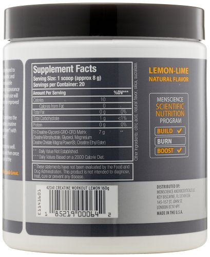 Men's creatine monohydrate, creatine chelate and ethyl ester muscle supplement with glycerol. Post-workout exercise and muscle recovery supplement drink. This proprietary bioengineered matrix (GRO-CR3) saturates muscles with three types of creatine to give muscles a larger, fuller appearance while dramatically improving strength gains. This advanced formula unleashes full muscular potential for more reps and better overall workouts. Includes glycerol for optimal absorption.Feature