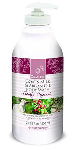 Janice body wash combines the fresh "clean" of our bar soap with the moisturizing benefits of goat's milk and argan oil in a gel creating a rich moisturizing lather that rinses clean. Our original formula combines fresh smelling oils which will leave your skin feeling fresh, soft, and revitalized.Feature