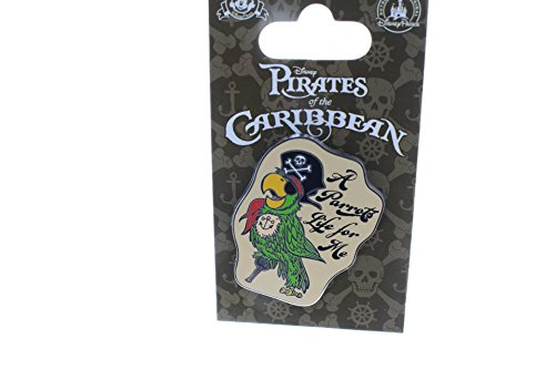 Product Description This pin features a pegleg pirate parrot from the Pirates of the Caribbean. He is wearing an eyepatch and pirate hat next to the words a parrot's life for me 0