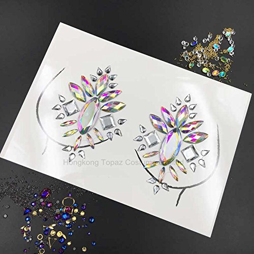party gifts 3d chest Tattoo Crystal gems nipple Stickers face body jewelry sticker (Nipple type)