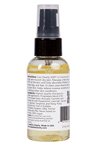 Isabella's Clearly SOFT for smooth, healthy, and hydrated skin. Vitamin C, E, and natural essential oils penetrate deep into the skin for optimal hydration and skin revitalization, healing dry patches and restoring balance. The unique anti-aging formula is effective in reducing fine lines and wrinkles and providing your skin with powerful nutrients to stimulate new cell growth, improving skin tone and texture. SOFT moisturizes dry rough skin and adds a protective layer to aid with skin elasticity, resulting in smoother healthier looking skin. Light soothing aromas of essential oils will delight and relax you, without being overpowering. You will love how your skin feels and looks when using SOFT!