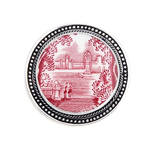 -. Title : Broken China Jewelry Mason's Vista England Red White Sterling Pin/Brooch