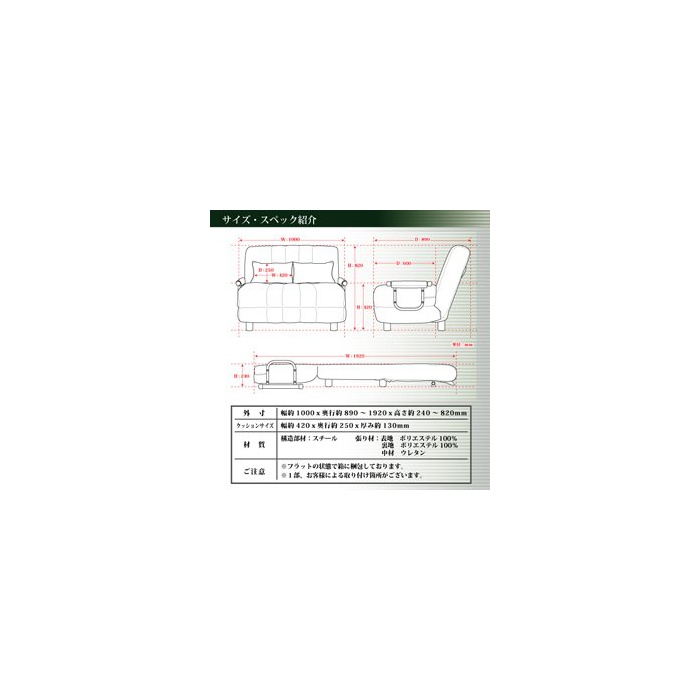 [사이즈] ■외치수(약):폭100×(길이)깊이89~192×높이24~82cm ■쿠션(약):폭42×(길이)깊이25×두께13cm
