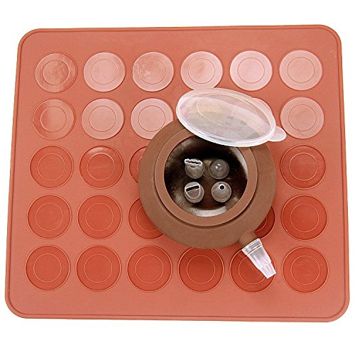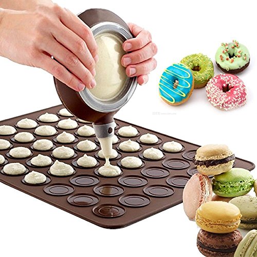 - Bake up perfect, delicious macaroons easily with this mat Feature small ridges that hold the macaroon better in place. Turn over and use smooth side for other baked goods. It is neccessary of making cookie, muffin, pastry etc.The nozzles stay on well and it doesn't leak.