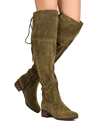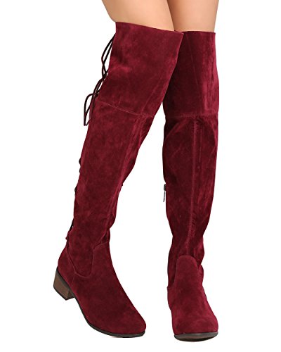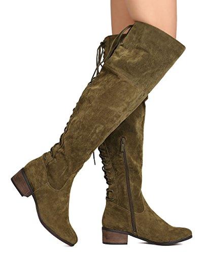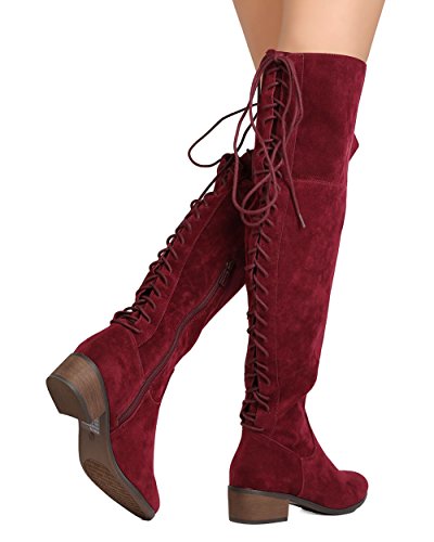 Breckelles GA28 Women Faux Suede Over The Knee Back Lace Up Riding Boot