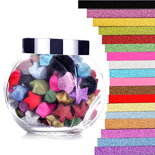 -. Feature : Quantity: 18 colors, each colors 20 sheets, total of 360 sheets / Color: 18 cute colors with glittery powder, each color is packed with small bags / Make really cute gift to your friends or beautiful decorations for tables, vases, or just something fun to do to pass the time / Works well for making stars, this is special gift for someone you love / Perfect for schools and teachers, have great fun with your origami talents