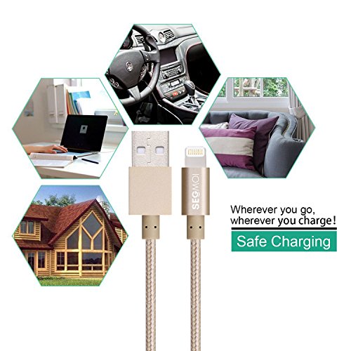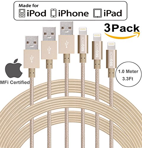[Apple MFi Certified] SEGMOI Lightning Charger Cable 3ft/1M Nylon Braided Cord USB Data Sync Charging Wire with Aluminum Connector for iPhone 6S 6 plus 5S 5 iPad Air 2 mini 4 (3Pack-Gold)