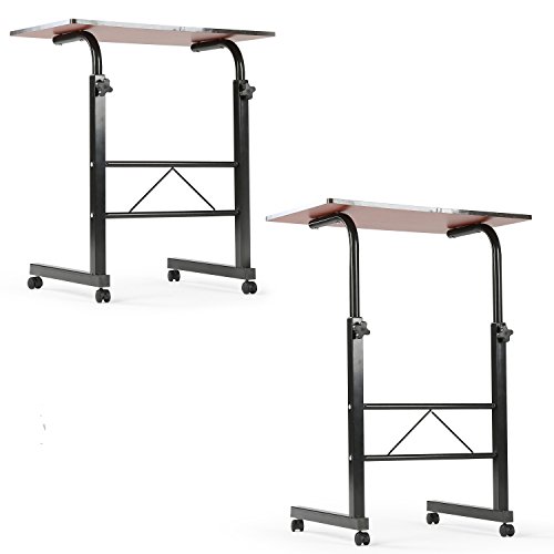 -. Title : Adjustable Height Metal Rolling Mobile Notebook Laptop Desk Workstation Stand, Dark Brown