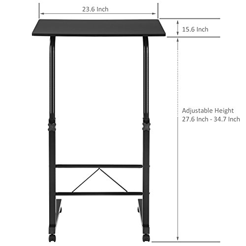 -. Feature : Adjustable height rolling metal computer stand with wood desktop surface / Multifunctional portable tray can be used for eating, computing, reading, writing, or drawing at the couch or in bed. / Height of desktop adjusts from 28 to 34.5 inches to accommodate various couches, beds, and chairs / Locking plastic wheels prevent damage to floors and provide additional stability when needed. / Approximate Dimensions (in inches): 27.6 - 34.7 H × 23.6 W × 15.6 D.