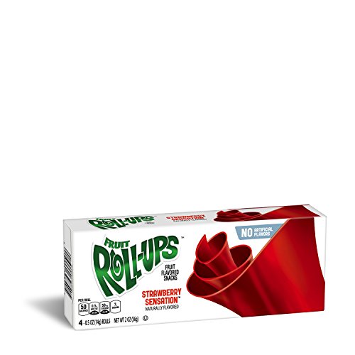 Fruit Roll-Ups Fruit Flavored Snacks, Strawberry, 4-Count Rolls (Pack of 18), NET WT 2oz