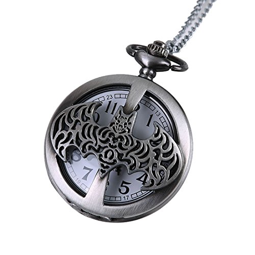 -. Title : WZC Silver Grey Quartz Batman Hollow Out Pocket Watches with Chains