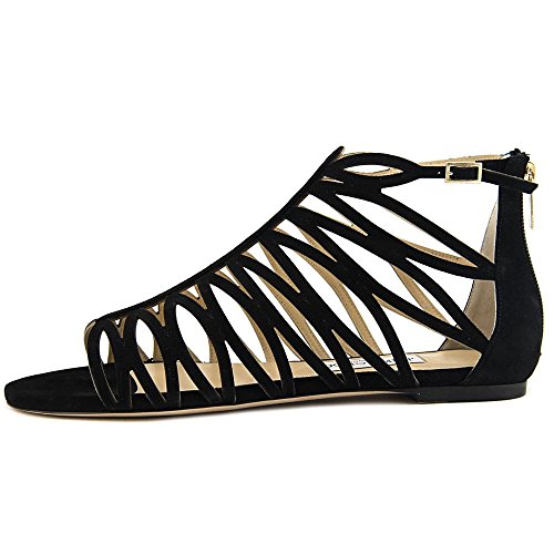 (JIMMY CHOO)/Women's/Sandals/DIRECT FROM USA/JIMMY CHOO Kerim Flat Women Open Toe Suede Black Gladiator Sandal