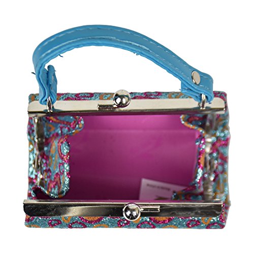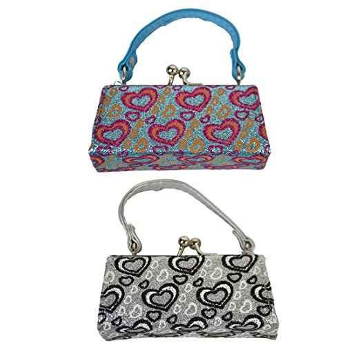 2 Lipstick Cases with Handles Mini Mahjong Coin Purse - Light Blue Silver Glittery Hearts