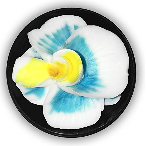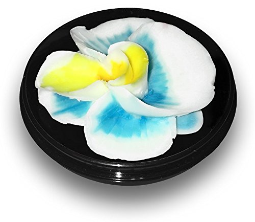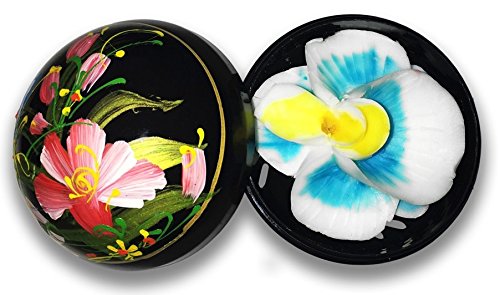 Thai Express Hand-Carved Soap Flower, 3” Scented Soap Carving Gift-Set, White/green, White/purple, White/blue, White/red, E in a round hand-painted/stamped case (White/Blue)