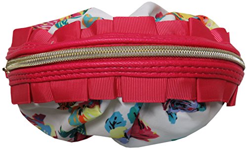 Betsey Johnson Women's Mini Ruffle Cosmetic Bag, White/Floral