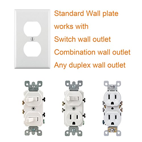 Commercial Specification Grade. Duplex outlet standard size PC Polycarbonate material wall plate with a captive screw. Standard Wall plate works with Switch wall outlet, Combination wall outlet, Any duplex wall outlet UL listed.