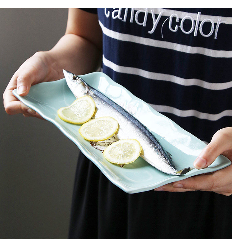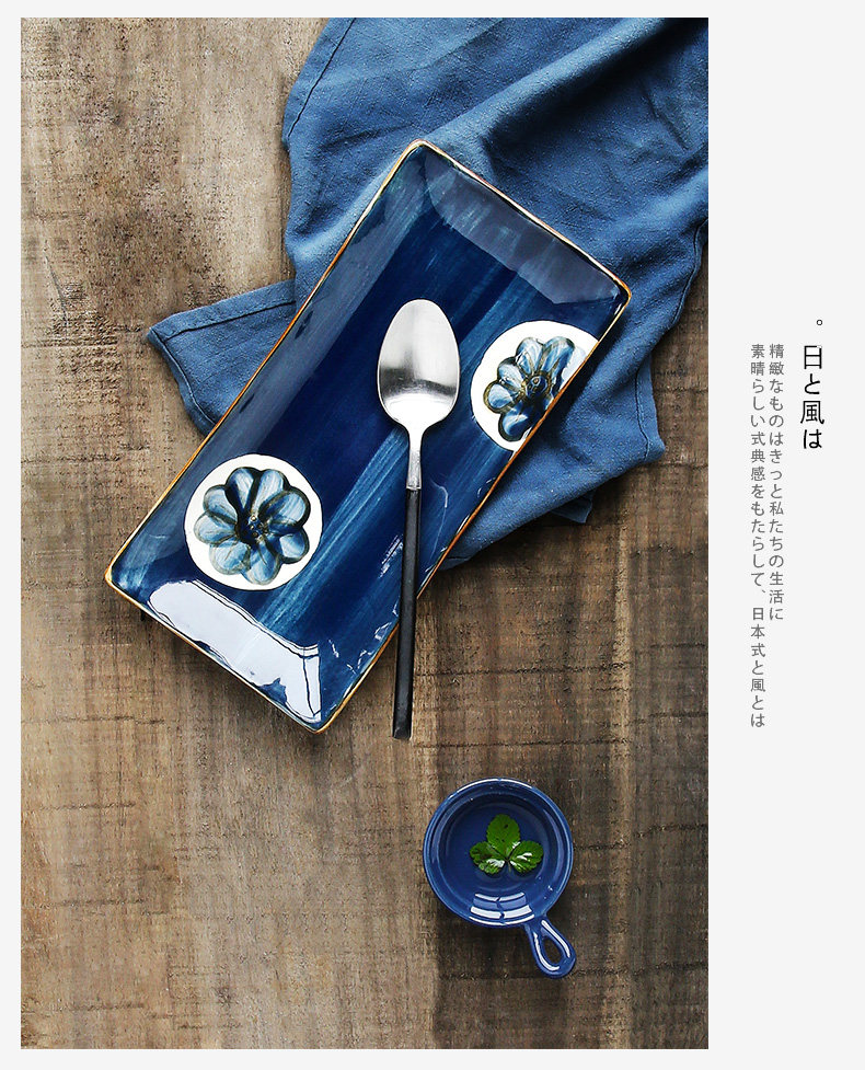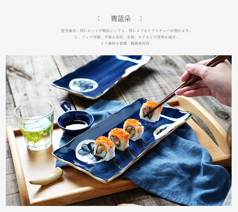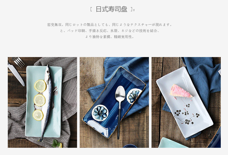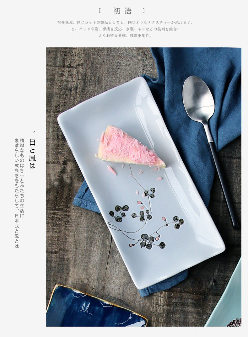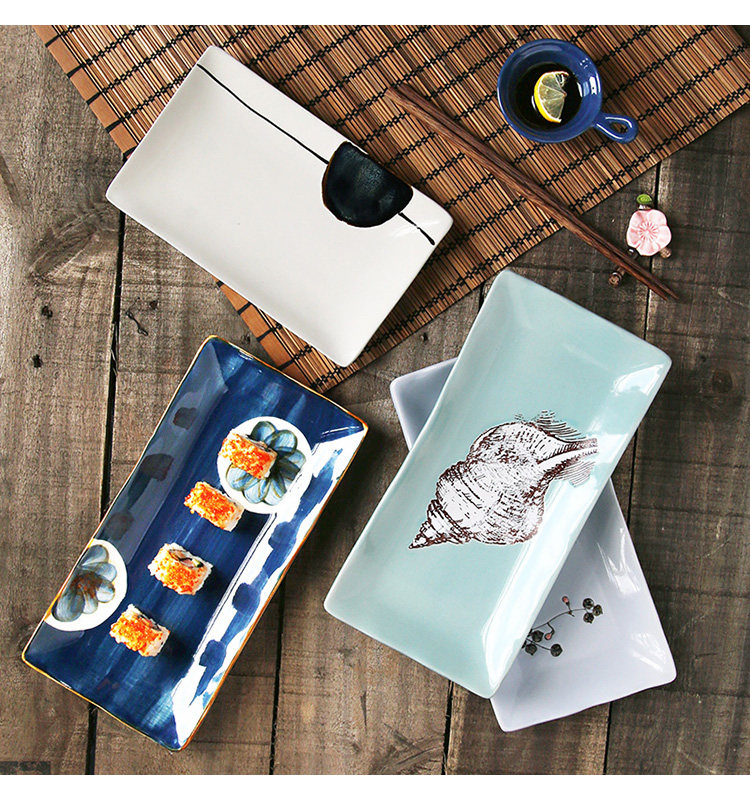 创意日式寿司盘子陶瓷点心盘手绘长方形个性餐具家用菜盘