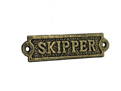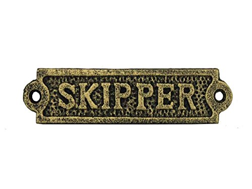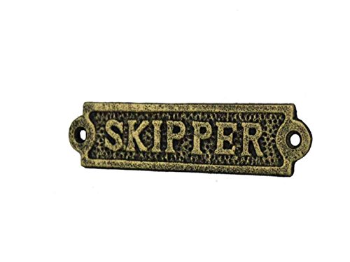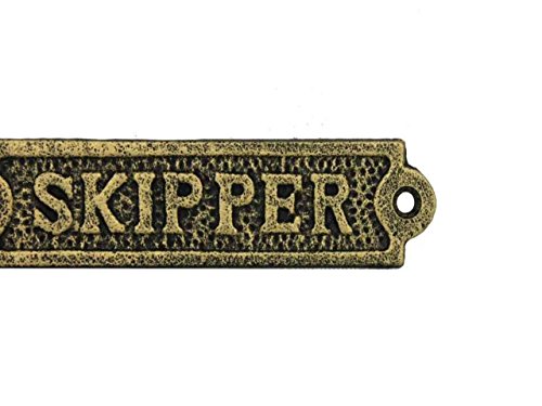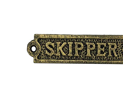 Hampton Nautical Cast Iron Skipper Sign Metal Wall Plaque, 6", Antique Gold