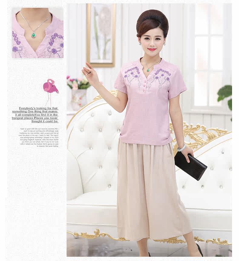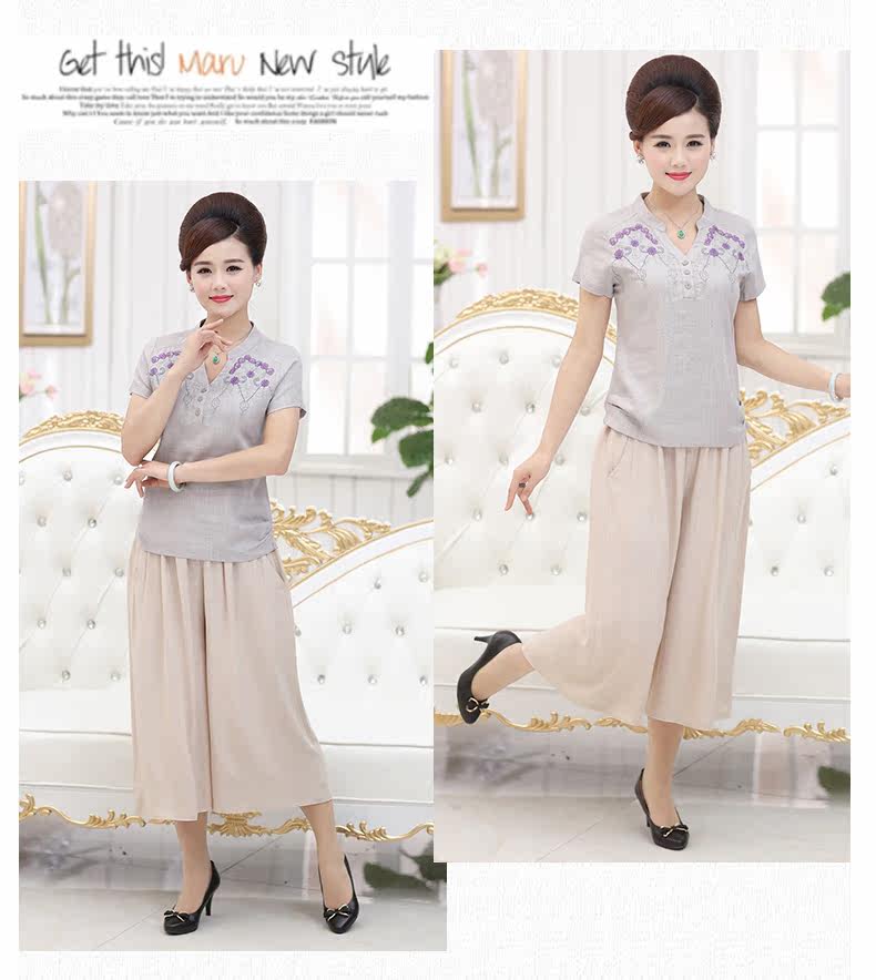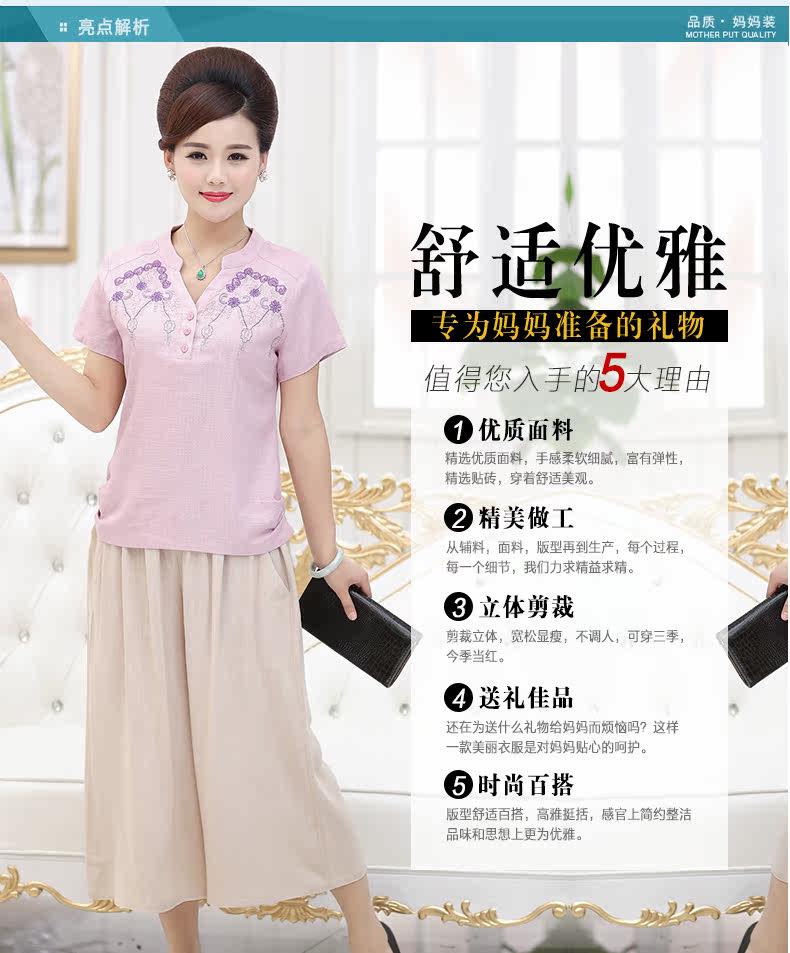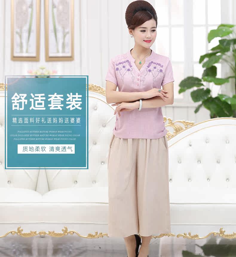中老年女装夏装套装中年女装短袖40-50岁妈妈装夏季T恤裤子套装