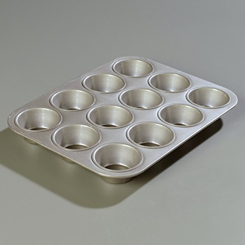 -. Title : Carlisle 601830 Steeluminum Heavy Duty 12 Cup Cupcake Pan, 14" Length x 10.62" Width, 3.5-oz. Capacity (Case of 12)