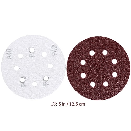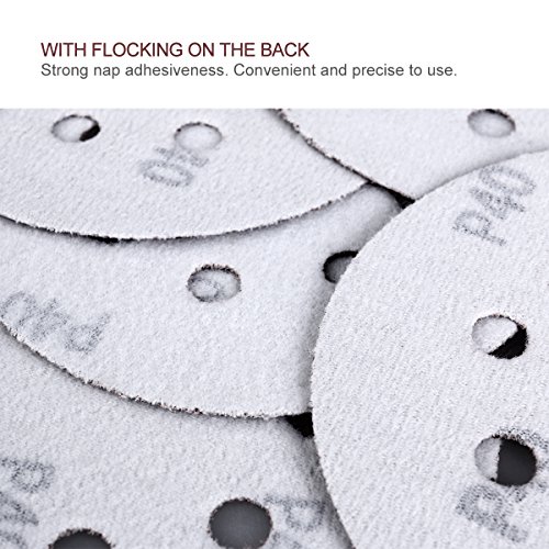 UEETEK Hook and Loop Sanding Discs 8 Hole 5 Inch 40 Grit Sandpaper round shape(Pack of 50)