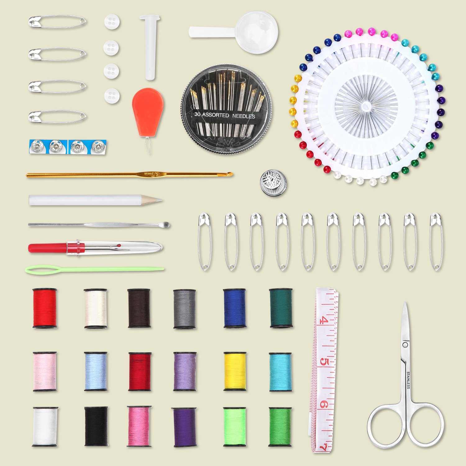 Sewing supplies as much as you can imagine are included.