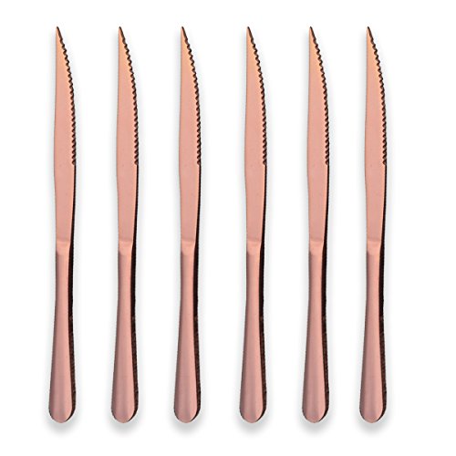 Berglander Rose Gold Plated Stainless Steel Steak Knives, Copper Color Steak Knife Heavy-Duty Steak Knife for Chefs, Great For BBQ Weddings - Dinners - Parties All Homes & Kitchens Pack of 6
