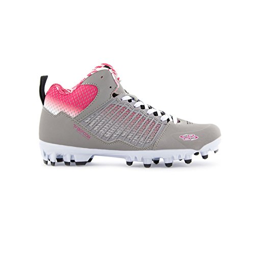 Studio : Boombah Publisher : Boombah Binding : Misc. Product Description Boombah Women's Ikhana Molded Mid Lacrosse Cleats - Multiple Color Options - Multiple Sizes Our Ikhana Molded Mid Lacrosse Cleats feature a KPU molded quarter mesh construction keeps the foot snug to the outsole for secure high torsion maneuvering. This mesh also provides a protective membrane to keep the foot secure from injury. Key features include: - Mid collar construction utilizing cushioned channels for ankle support and impact protection. Perforated for moisture and heat release - High density TPU chassis construction in conjunction with the pivot ring cleat configuration provides explosive angular motion in any direction - Pebax shank ridges are co-molded through the heel and shank to provide chassis stability and motion control - The dye sublimated graphic on the inside collar of the Ikhana adds an extra element of design - Fits true to size. 7.5 oz. Mid cut