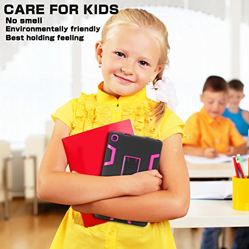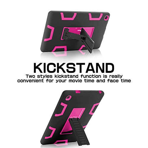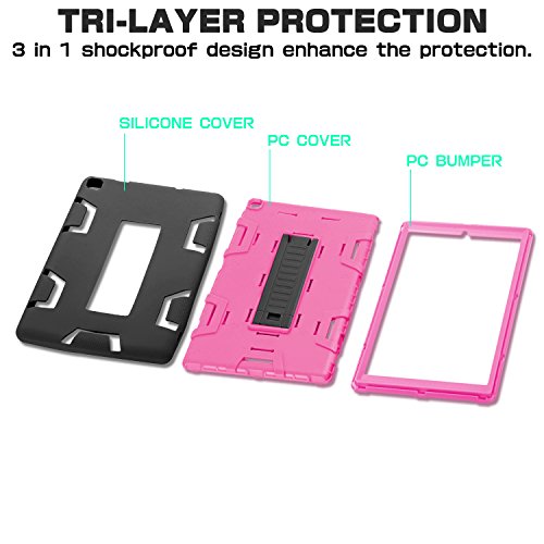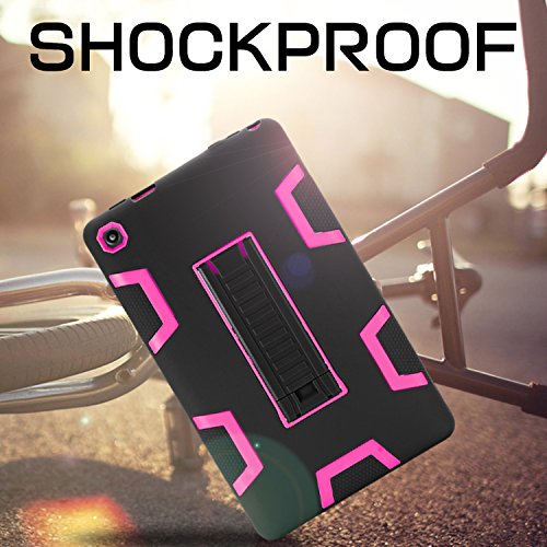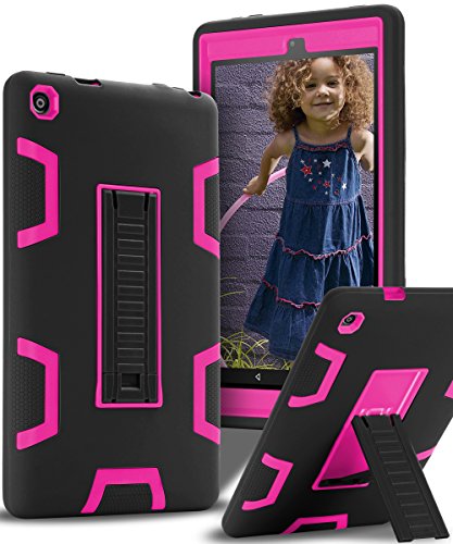 Fire HD 8 Case 2016,TIANLI All New Amazon Fire HD 8(2016 6th Gen)[Shock Absorption][Kickstand Feature]Three-Layer Hybrid Heavy Duty Armor High Impact Resistant Protective Case Cover,Black/Pink