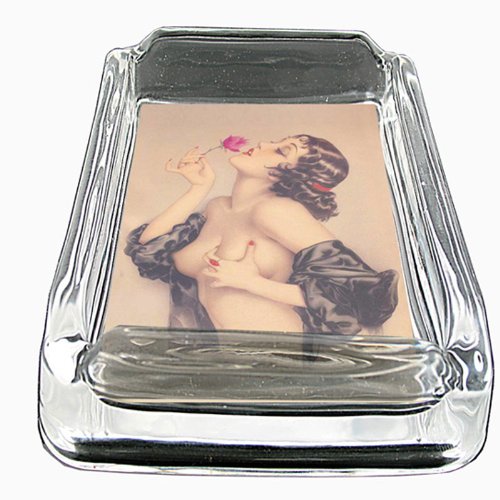 -. Title : Glass Square Ashtray Pin Up Girl Design-010