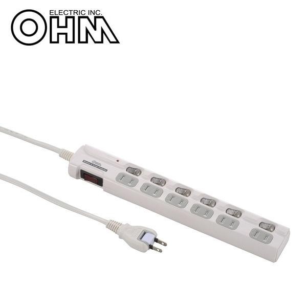 雷ガード機能がついた6個口の電源タップです。シャッターコンセント式でホコリによる火災やいたずらによる感電も防止します。 製造国:中国 ※サプライヤー直送品 ご注文後2~3営業日後の出荷となります【商品名】オーム電機 OHM 雷ガード&ブレーカー LED個別スイッチ付き 電源タップ 6個口 5m HS-T1980W